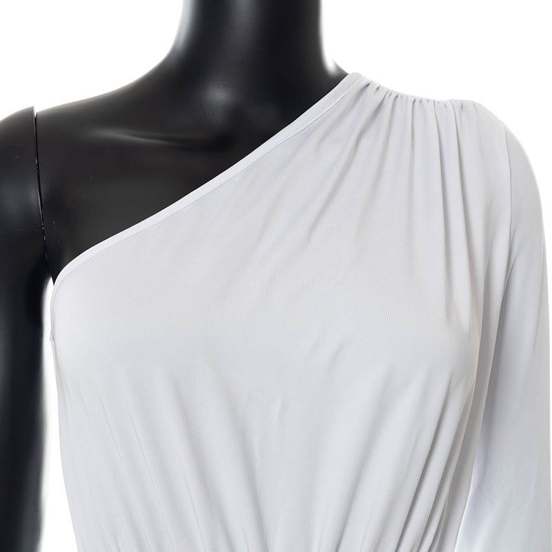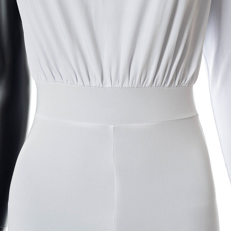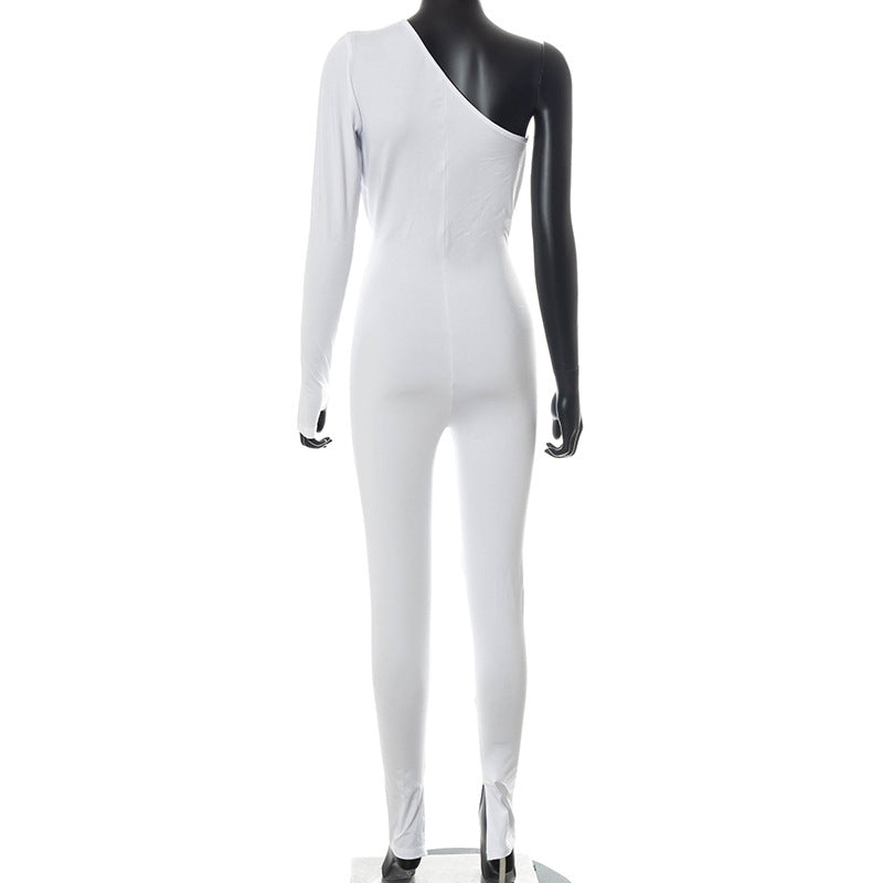 Autumn Solid Color Irregular Diagonal Collar Long Sleeve Tight Casual Trousers Jumpsuit