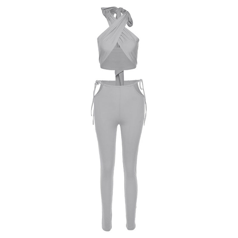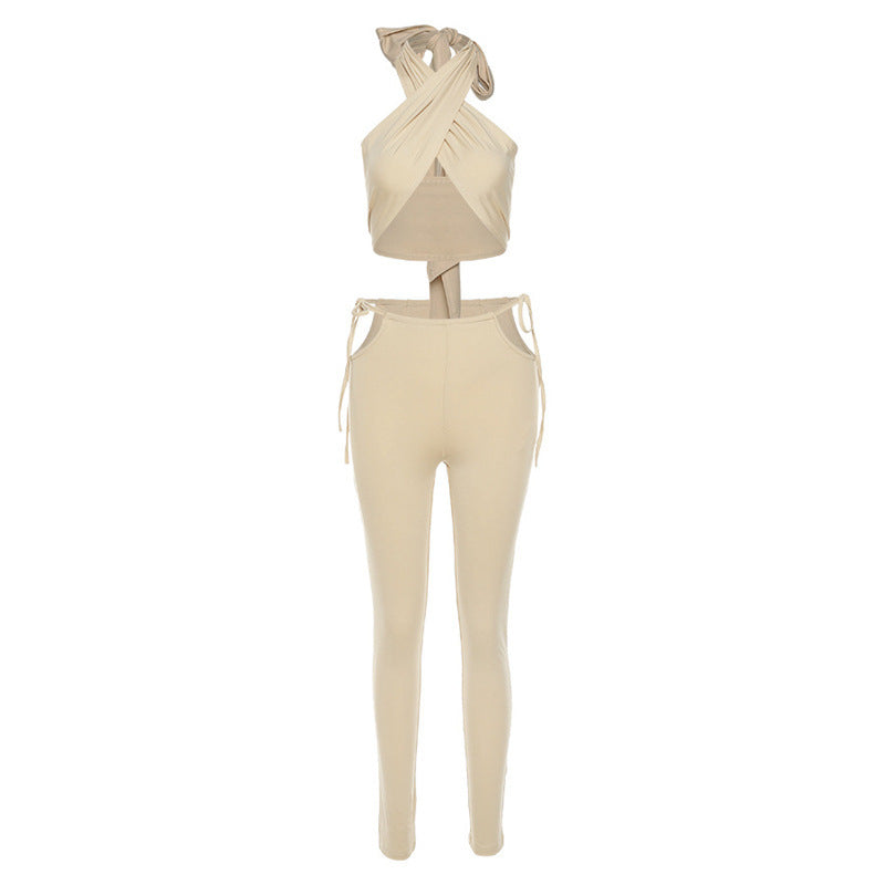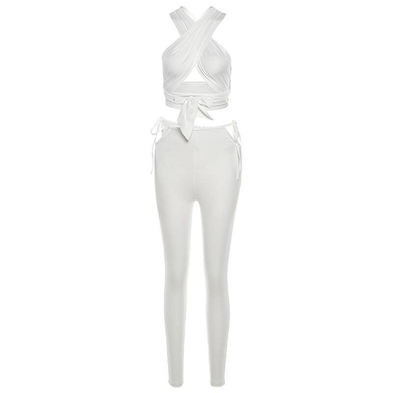 Autumn Sexy Lace-Up Sleeveless Midriff-Baring Short Vest Pants Casual Suit For Women