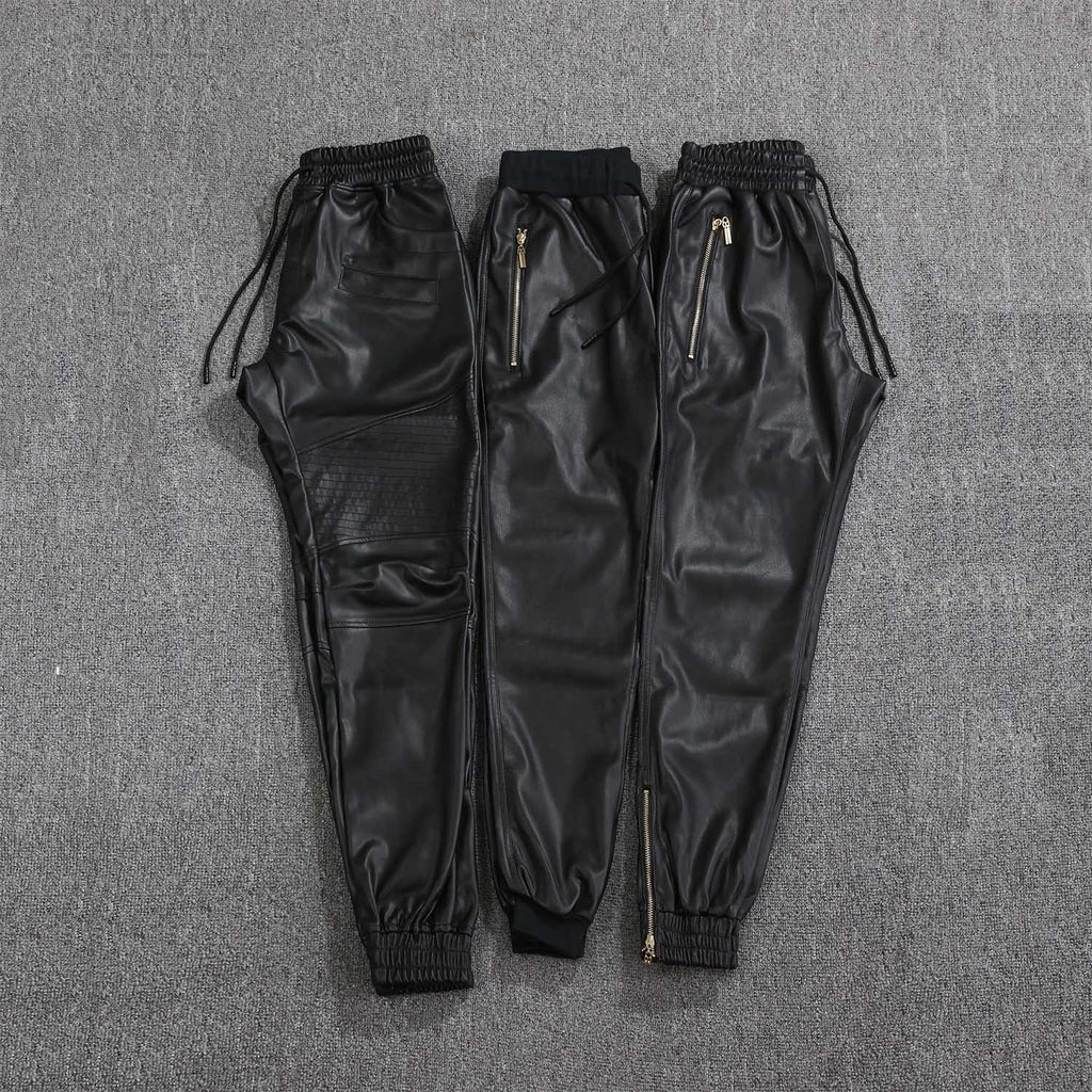 Mens Leather Pants Men's Harem Motorcycle Leather Pants Season Motorbike Cycling Leather Pants