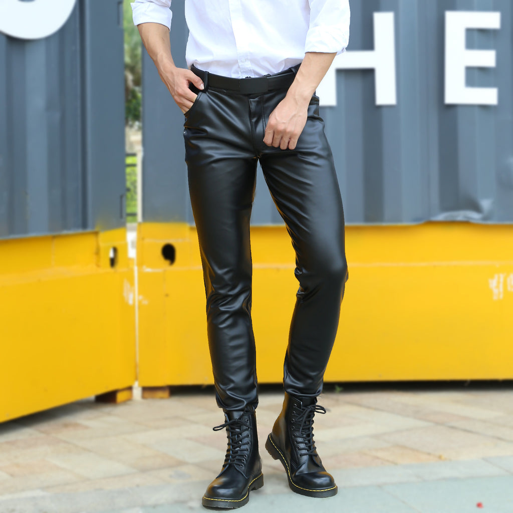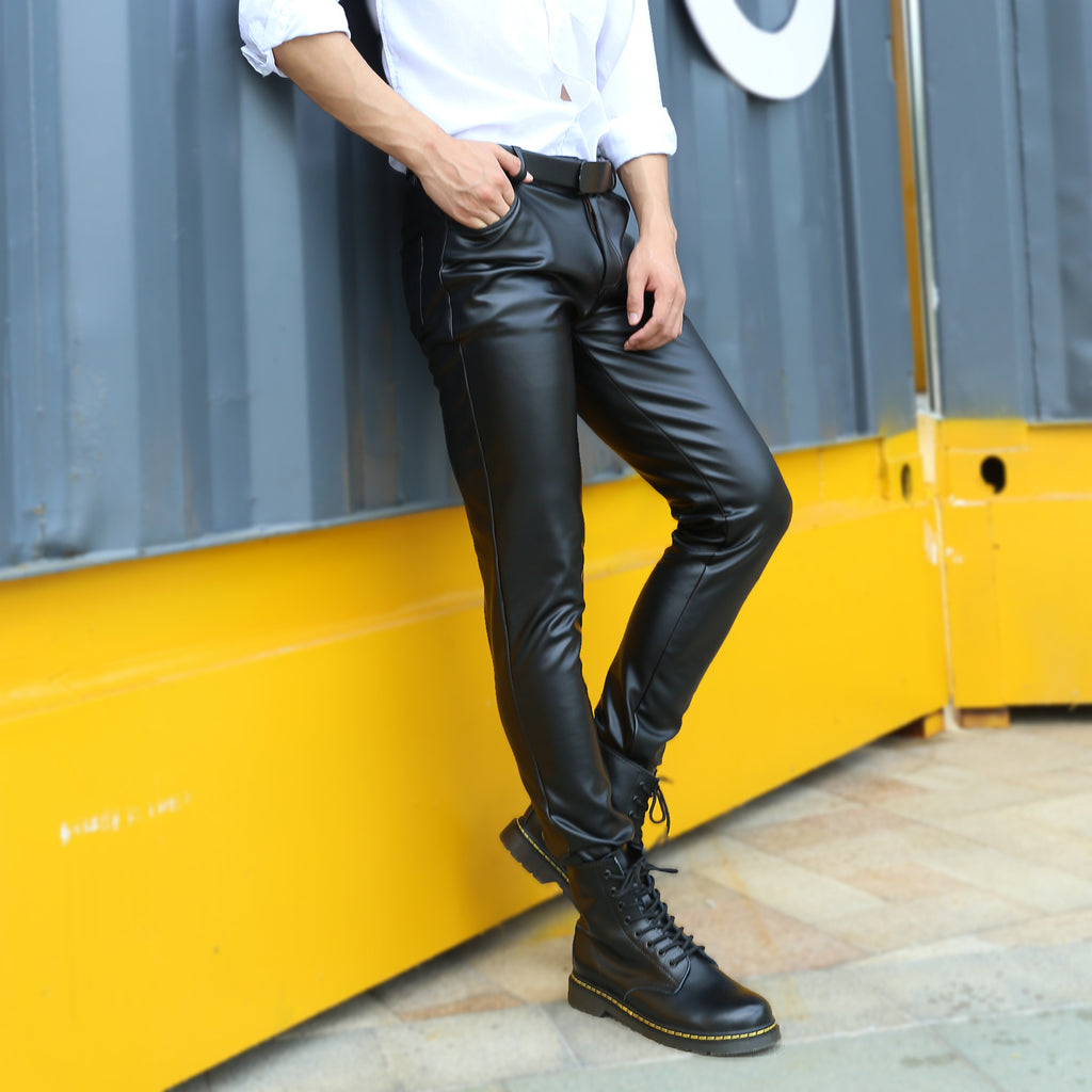 Mens Leather Pants Fall Slim Fit Leather Pants Men's Skinny Pants Tight Elastic Trend Motorcycle Leather Pants Leather Pants