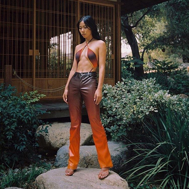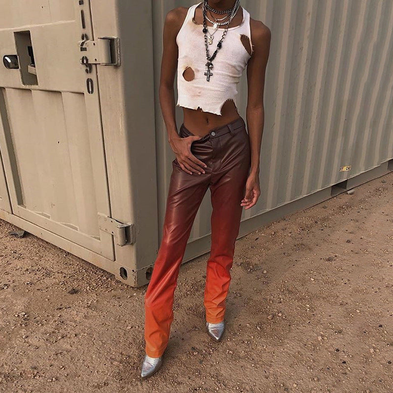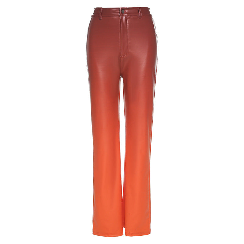 Brown Leather Pants Winter High Waist Slim Slimming Gradient Straight Casual Pants for Women
