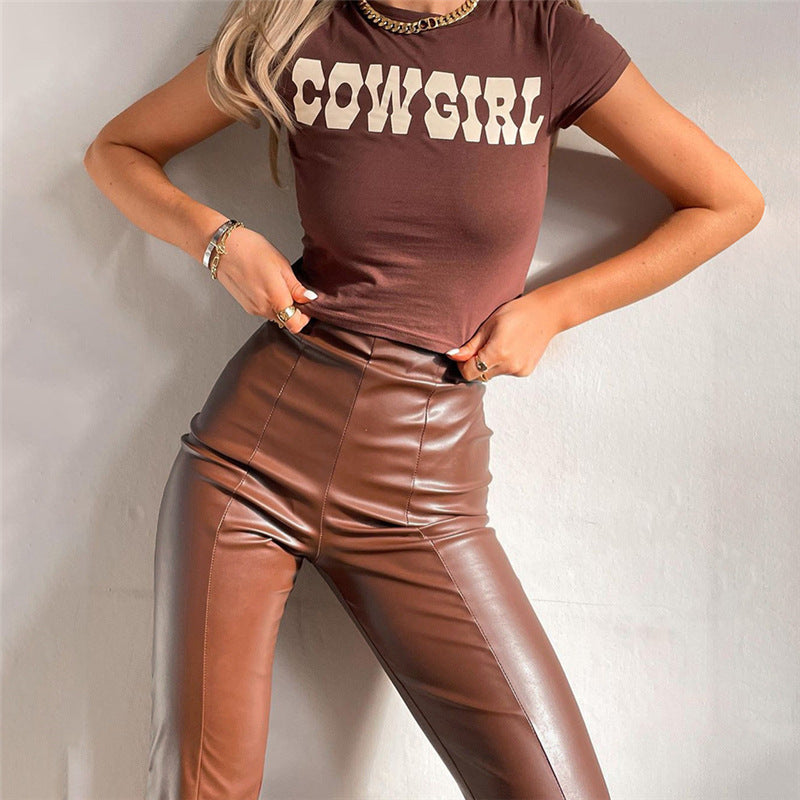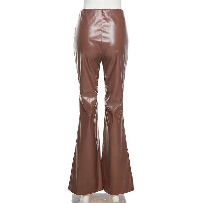 Brown Leather Pants Women's High Elastic PU Leather Pants Leggings Women's Pants