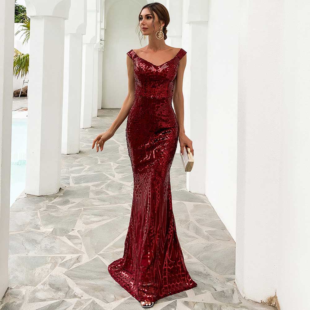 Burgundy Dresses For Wedding Sexy Sequined Tube Top Mopping Banquet Party Evening Dress Fishtail Dress