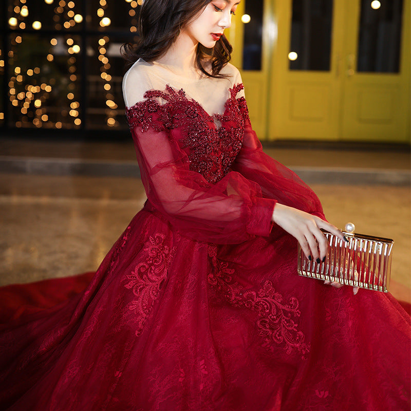 Burgundy Dresses for Wedding Autumn Winter Red Wedding Dress Pregnant Women plus Size Long