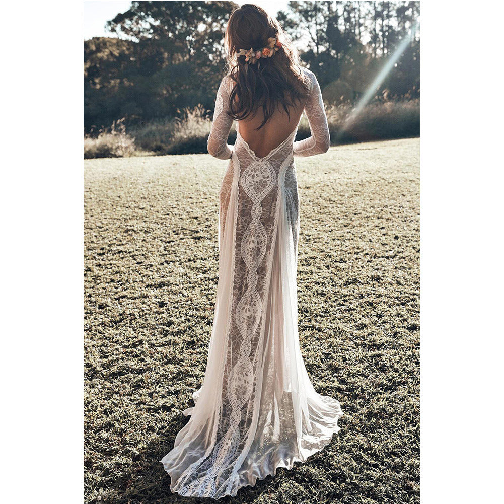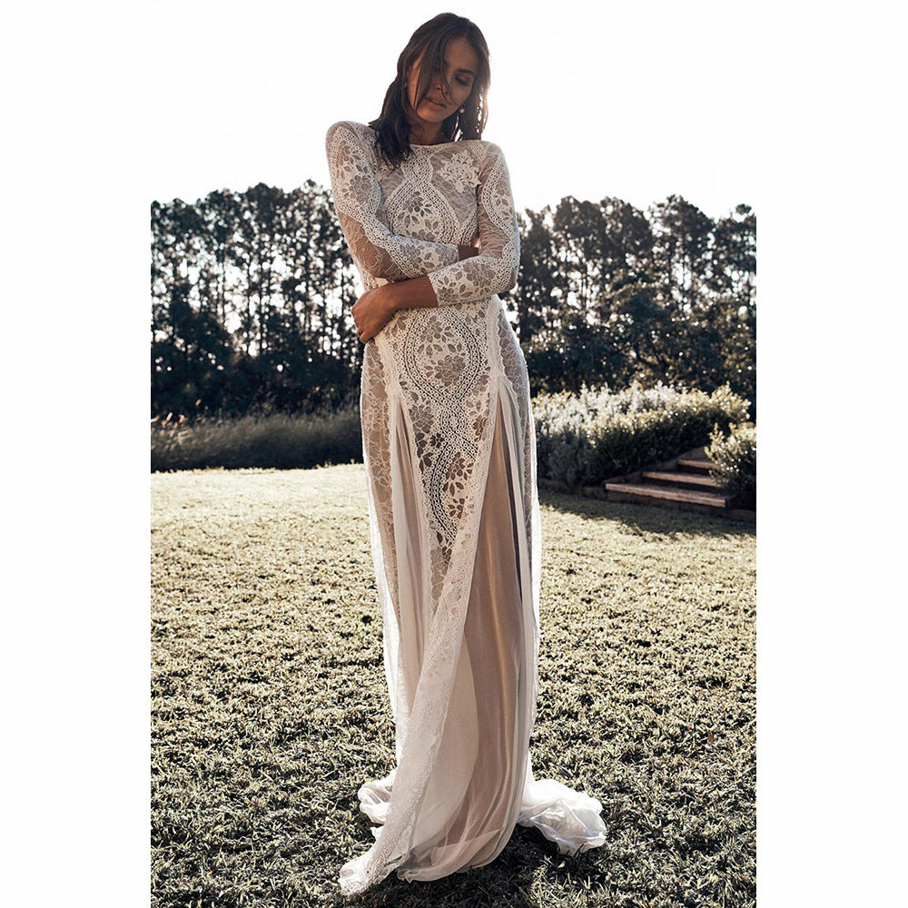 Bohemian Coachella Outfits Banquet round Neck Long Sleeve Printed Backless Lace