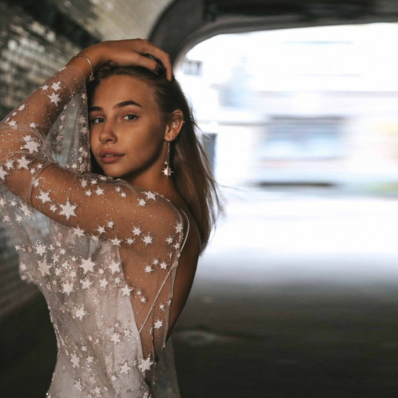 Bohemian Coachella Outfits XINGX Bronzing Glitter See-through Backless Evening Dress
