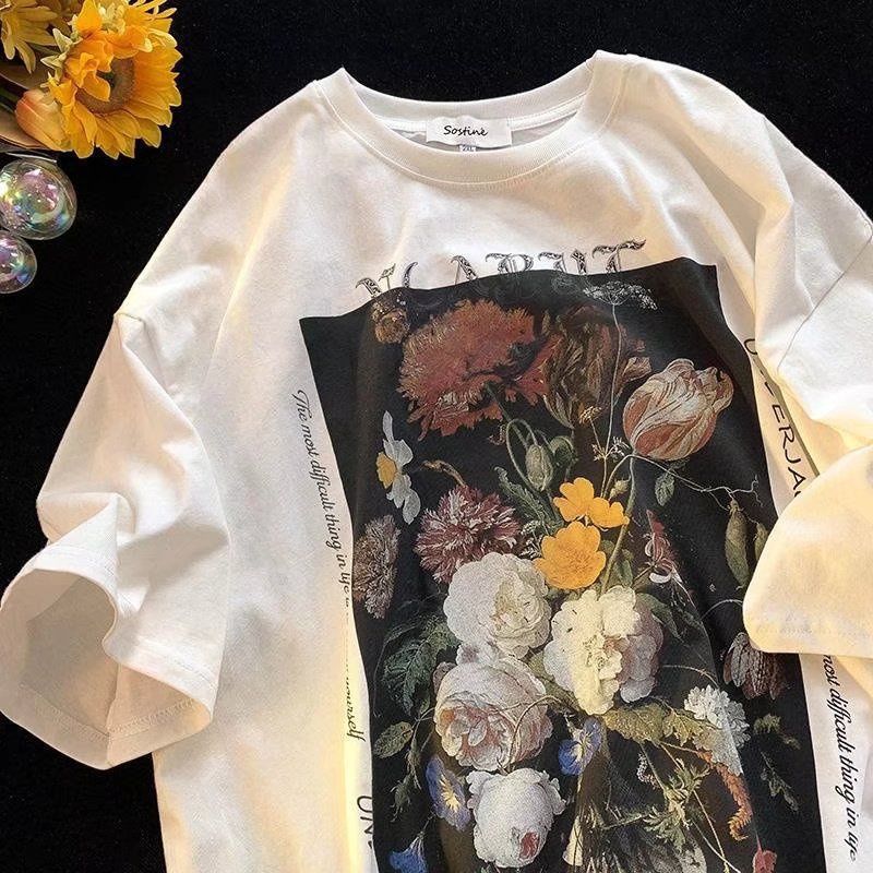Caravaggio T-Shirts Flower Oil Painting Short Sleeve Men and Women Street Loose plus Size