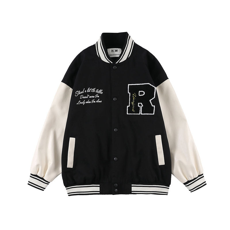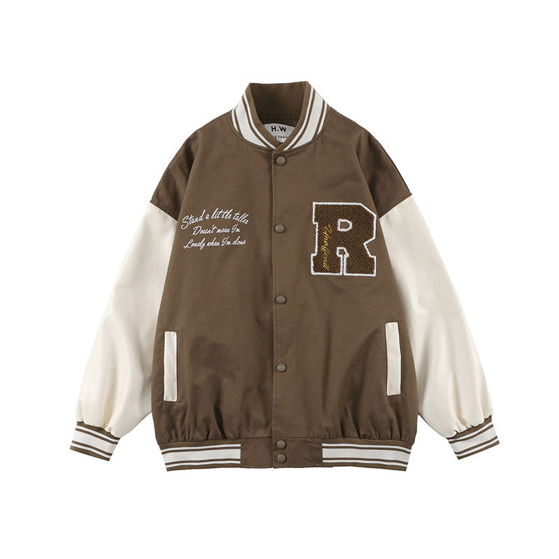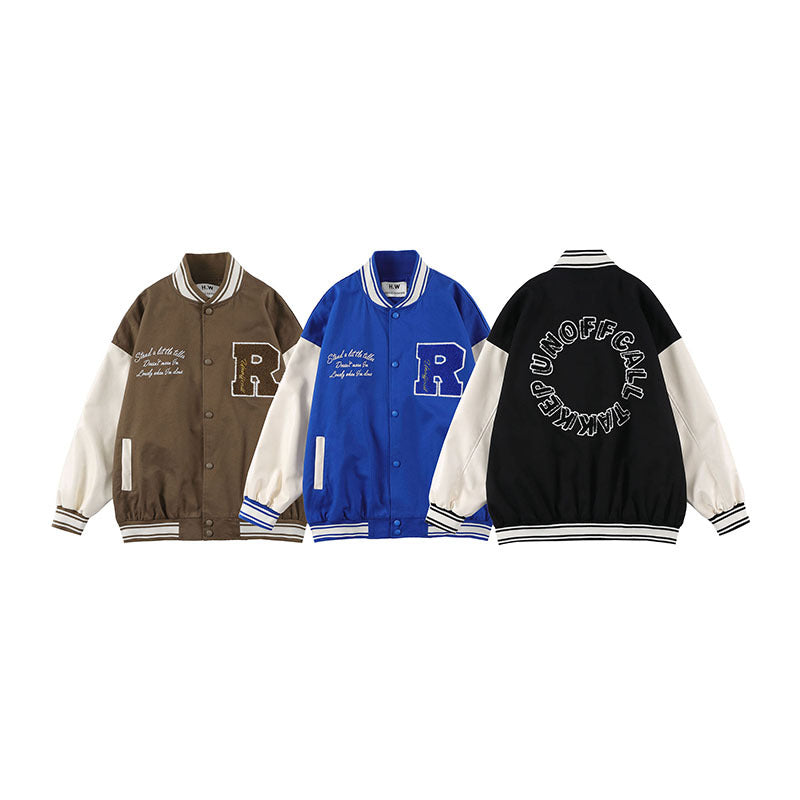 Baby Blue Varsity Jacket Vintage Baseball Uniform Jacket Male Baggy Coat