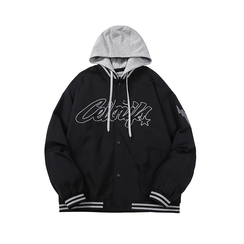 Baby Blue Varsity Jacket Spring and Autumn Coat Men's Hooded Jacket