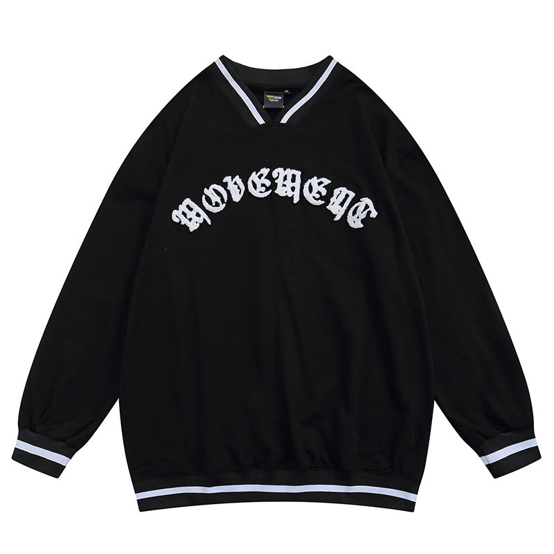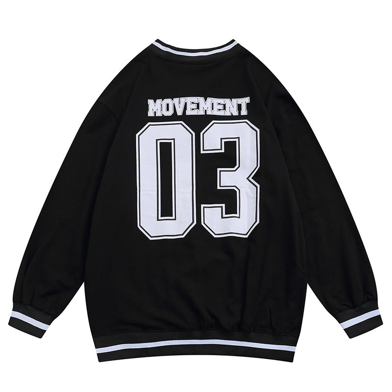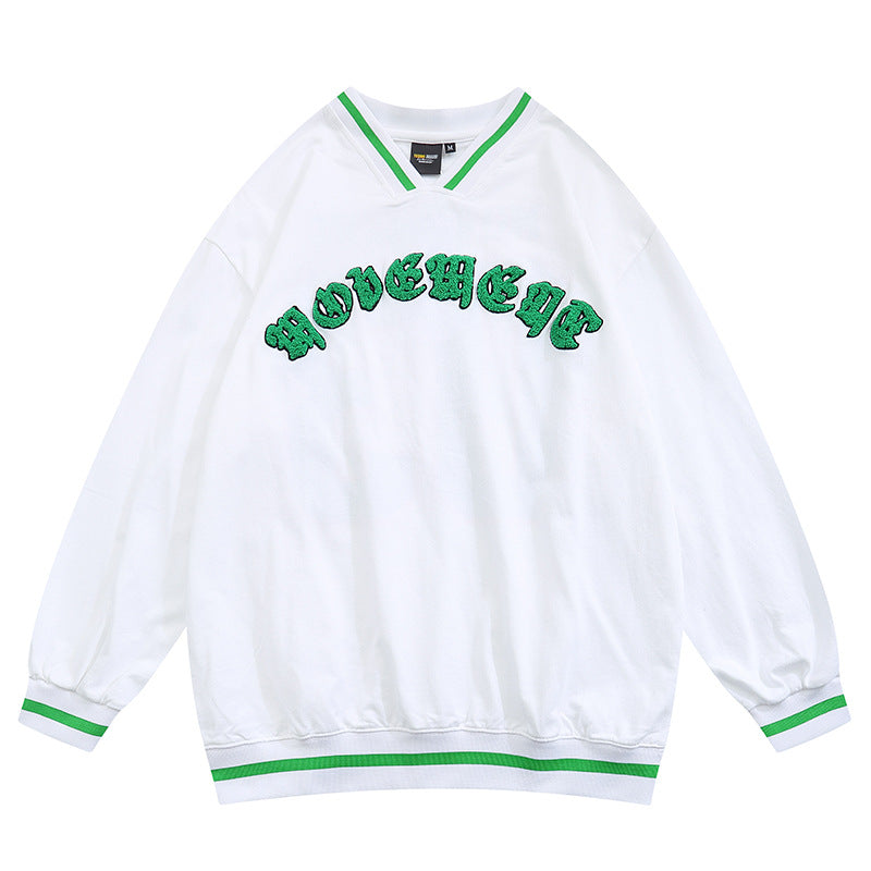 Baby Blue Varsity Jacket American Retro Loose Couple V-neck Baseball Uniform