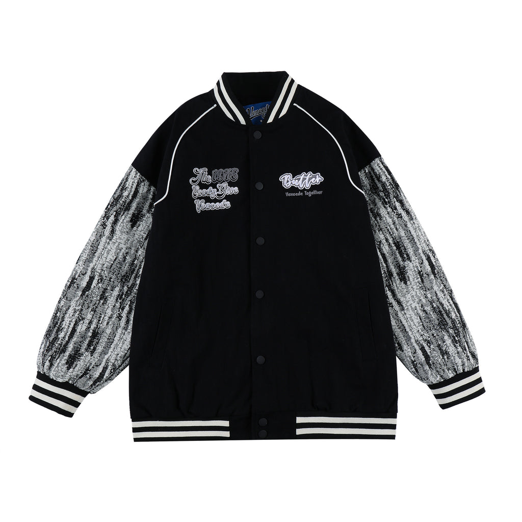Baby Blue Varsity Jacket Vintage Embroidery Contrast Color Baseball Uniform for Men Spring and Autumn Coat