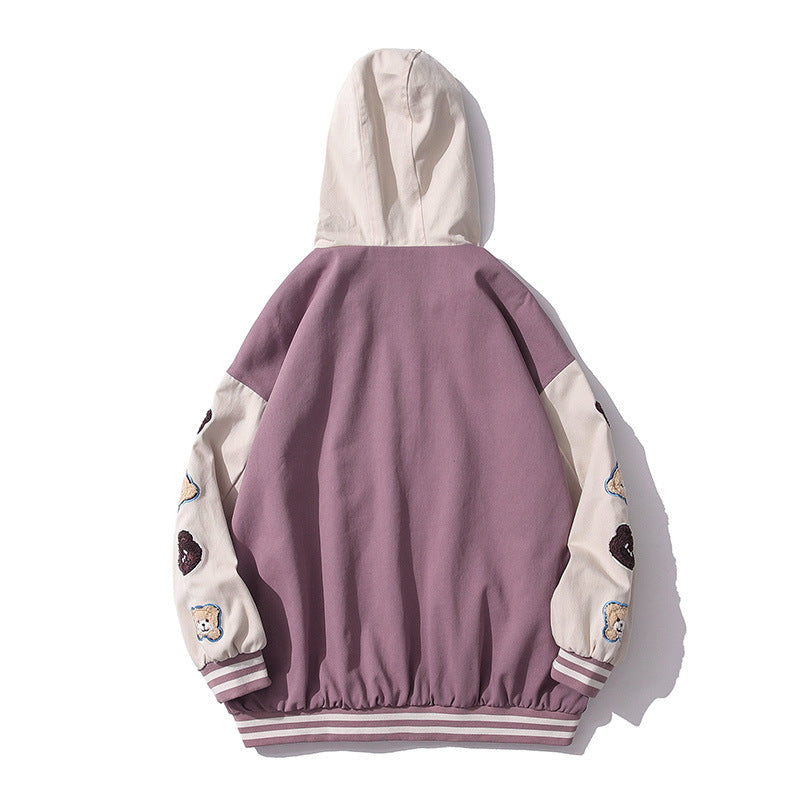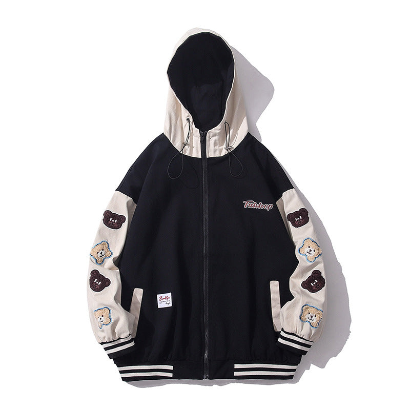 Baby Blue Varsity Jacket Hooded Jacket Men's Loose Top