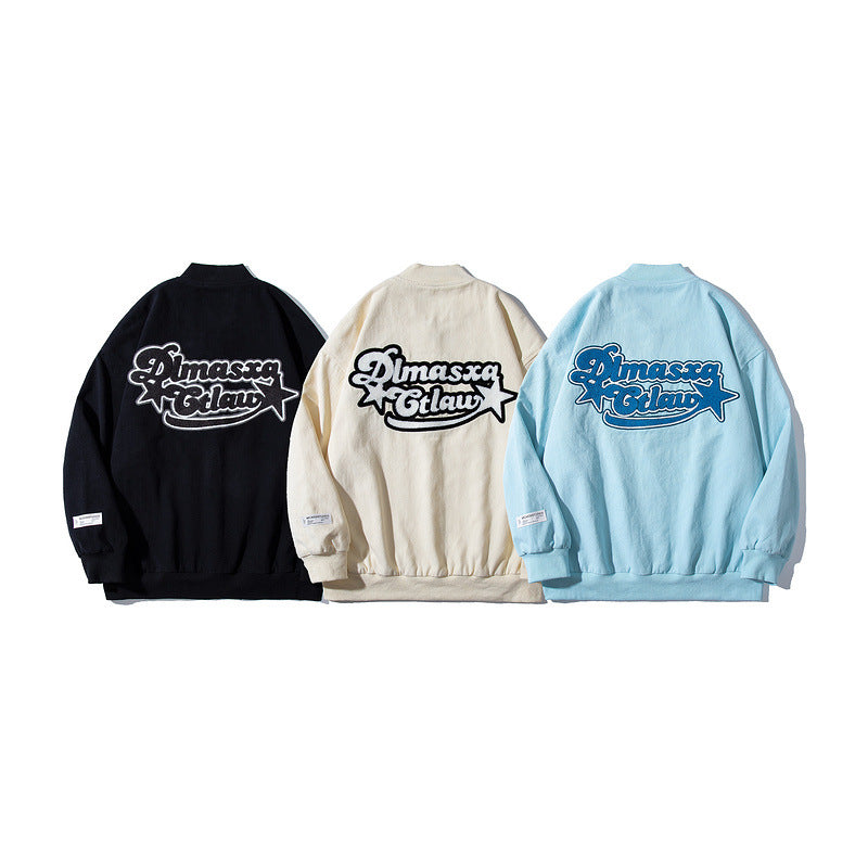 Baby Blue Varsity Jacket Retro Hip Hop Baseball Uniform Jacket Men and Women