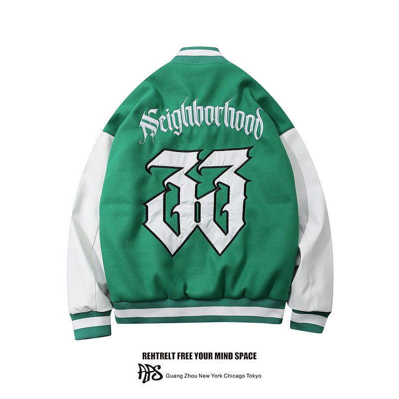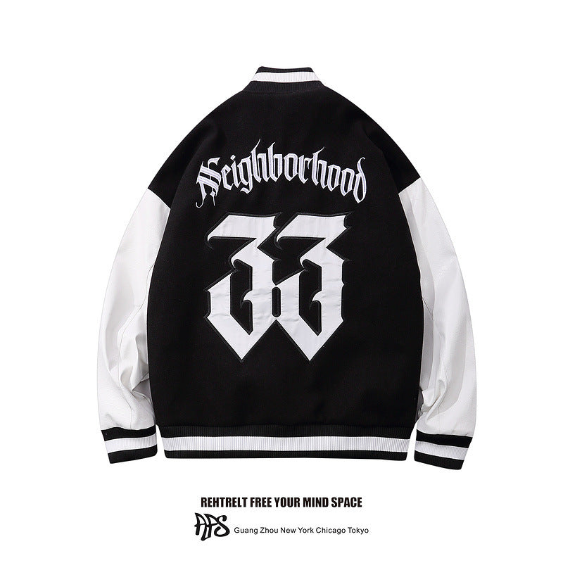 Baby Blue Varsity Jacket Black and White Stitching Embroidery Baggy Coat Men
