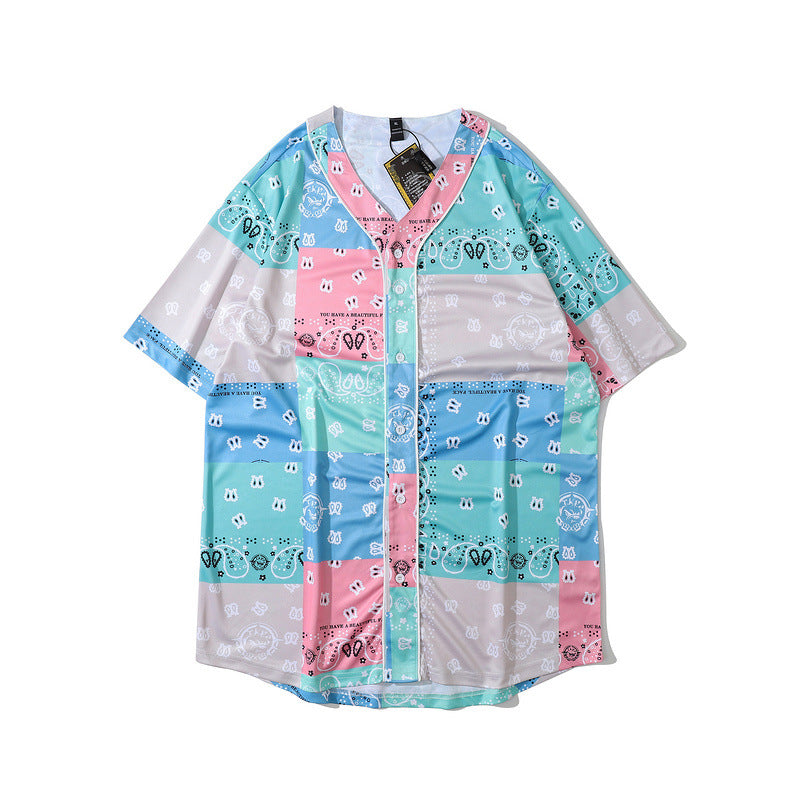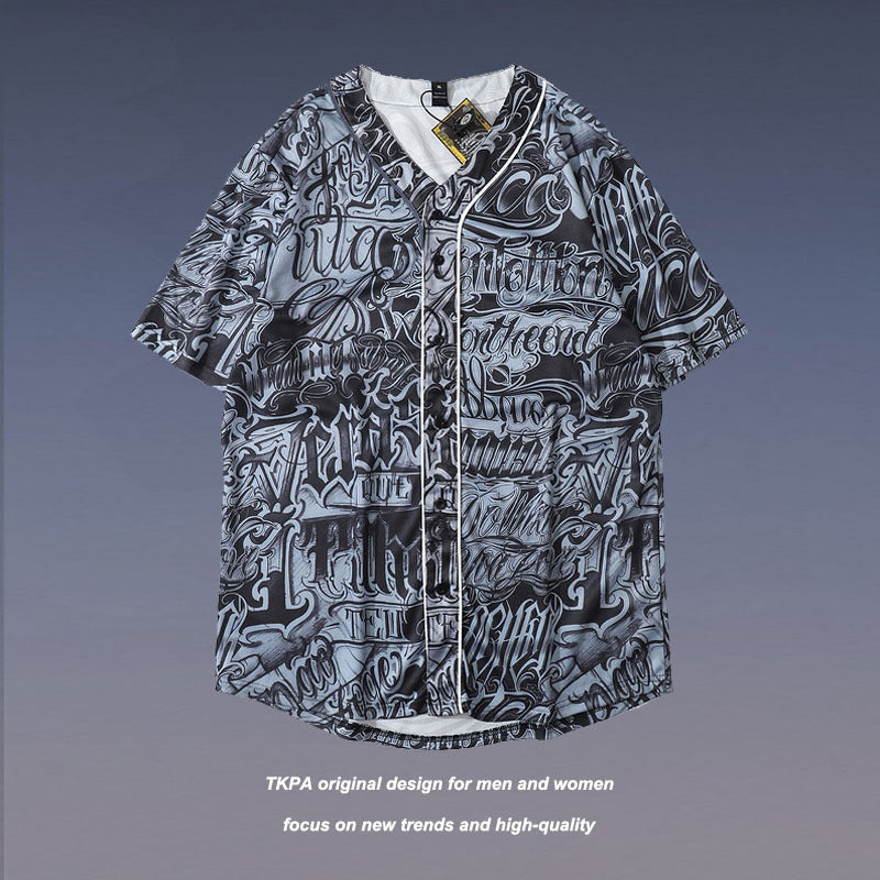 Baggy Baseball Jersey Baseball Cardigan Short Sleeve T-shirt Summer