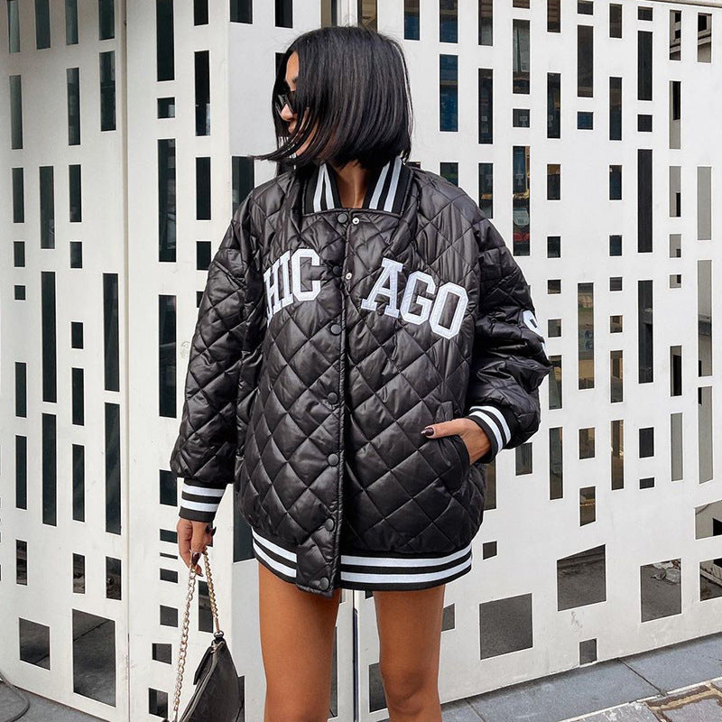 Brown Cropped Varsity Jacket Autumn and Winter Letter Embroidered Baseball Uniform Coat