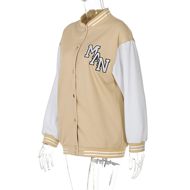 Brown Cropped Varsity Jacket Colorblock Letter Embroidered Baseball Jacket