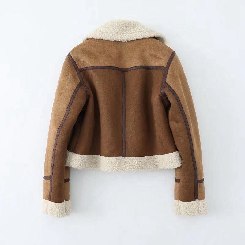 Brown Cropped Varsity Jacket Locomotive Style Jacket Coat