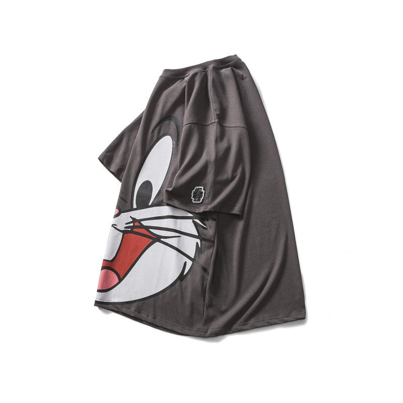 Bugs Bunny Shirt Loose Casual Cartoon Gray Clothing for Men