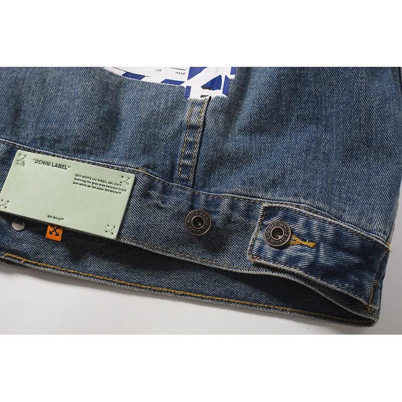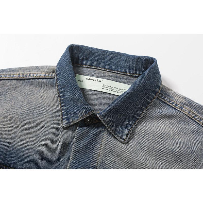 Arrow Denim Jacket Jean Coat Letter Arrow Washed Distressed Jacket Ow Men's and Women's Denim Jacket Owt