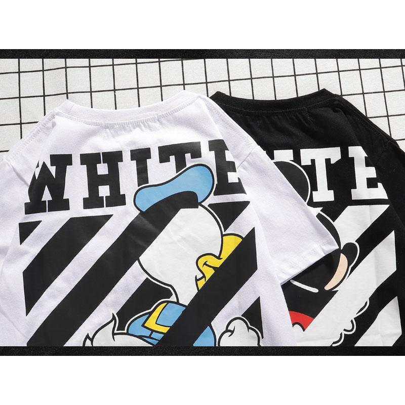 Cartoon Mickey Men and Women Short Sleeve Ow Donald Duck Loose Twill Couple Cotton Tshirt Owt t shirt