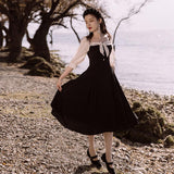 Summer Retro Square Collar Off-Shoulder and Black Dress Black Retro Vintage Cottagecore Aesthetic Flowy Victoria Cottage Core Dress
