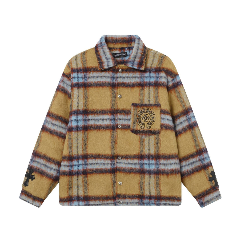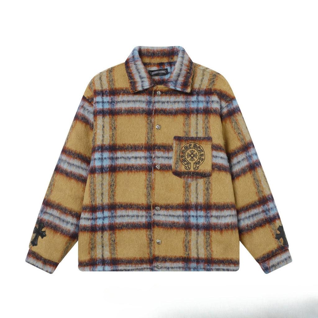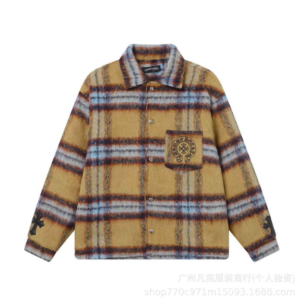CHH Chrome Heart Coat ChromeHearts Retro Design Jacket Plaid Casual Cotton