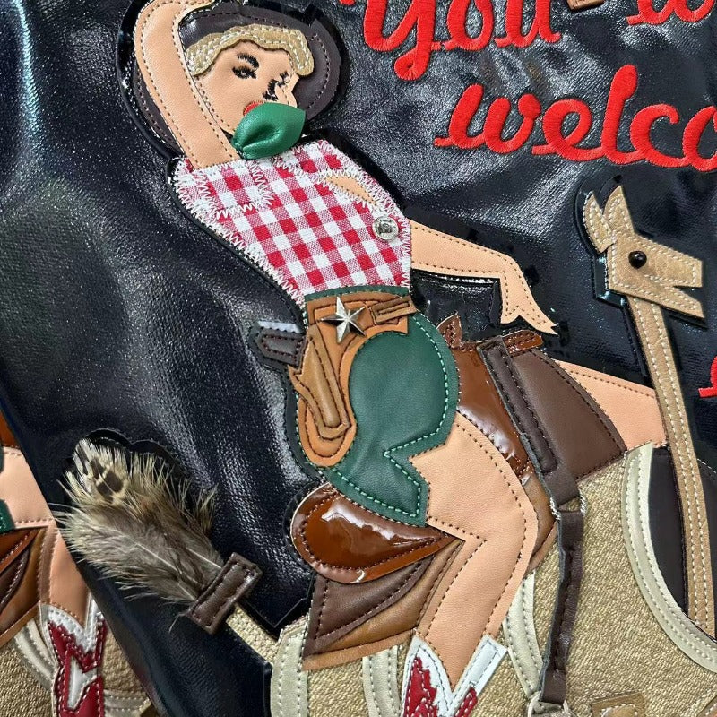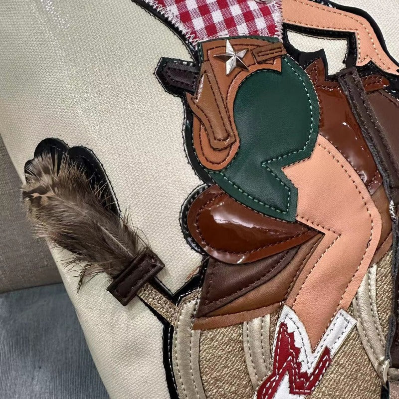 Chh Chrome Heart Leather Bag Embroidered Cartoon Tote Bag